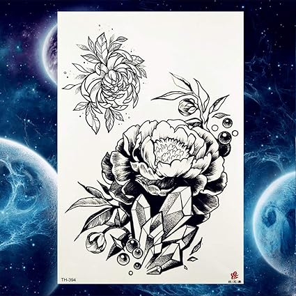 Tatuajes De Flores De Peonia Temporales Geometricos Vankirs Pegatinas De Tatuaje De Plumas Falsas Negras De Mujer Con Brazo Triangular En 3d Papel De